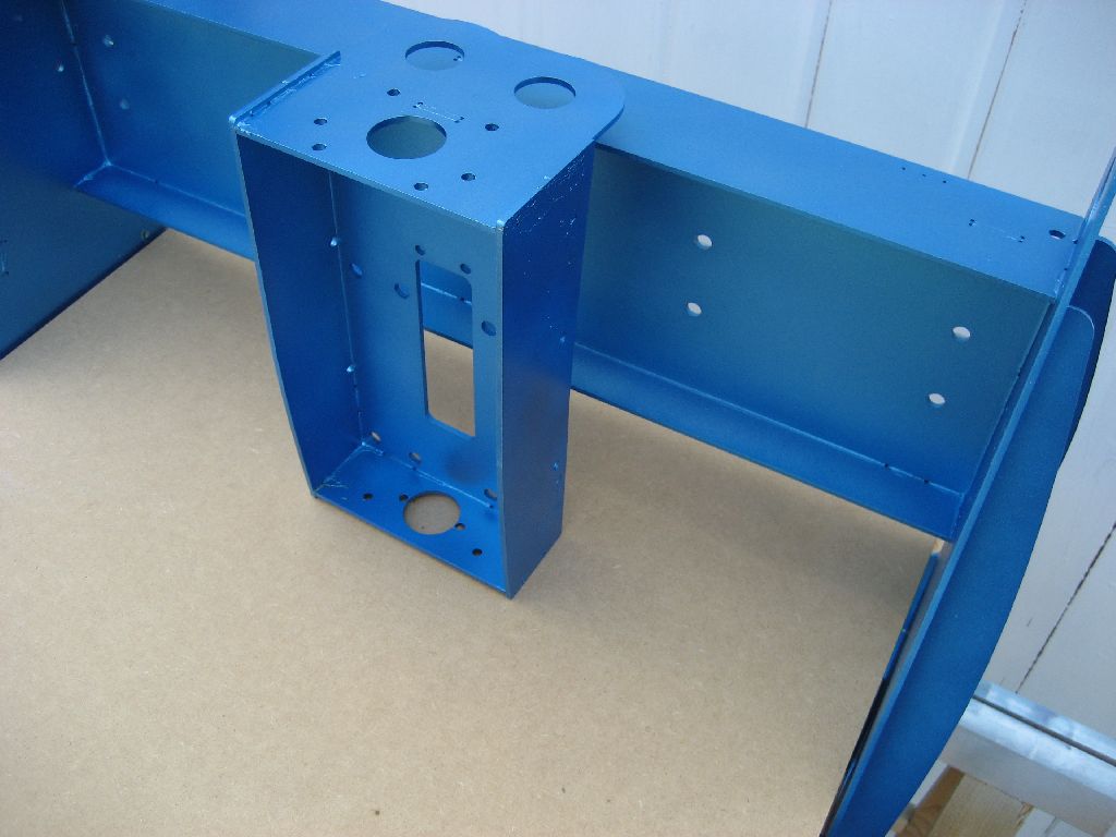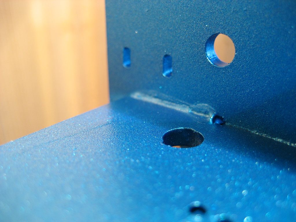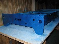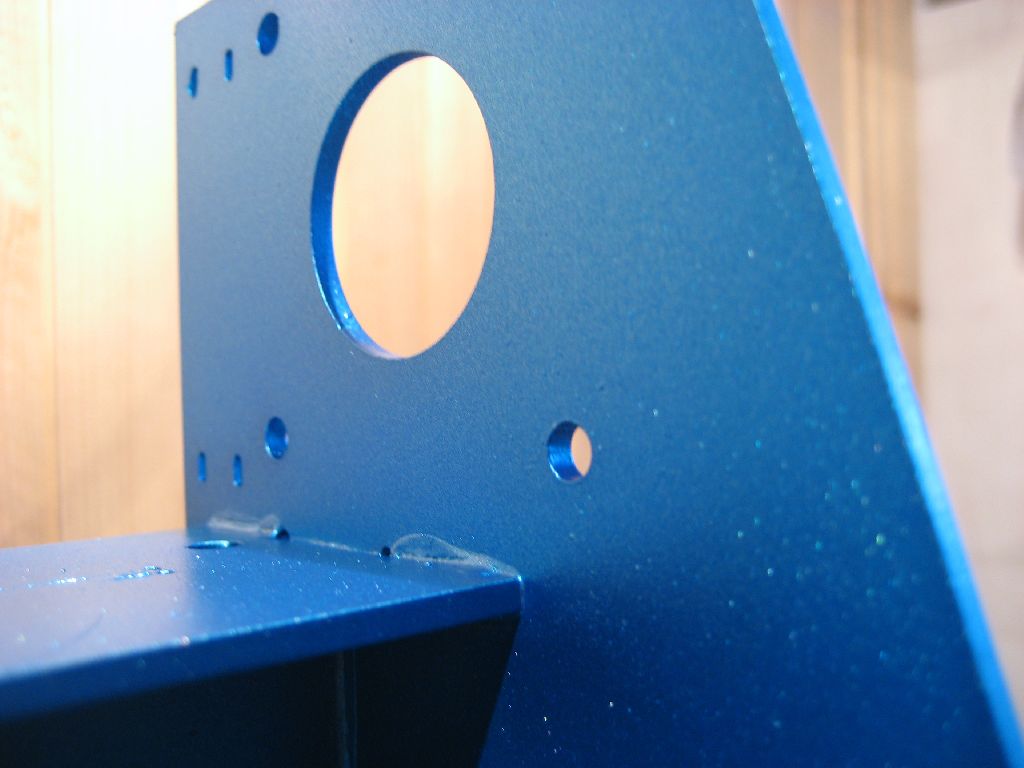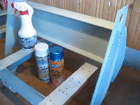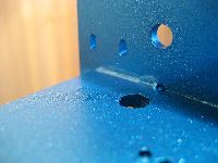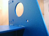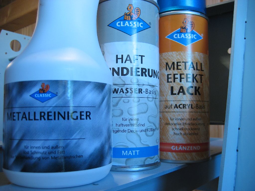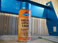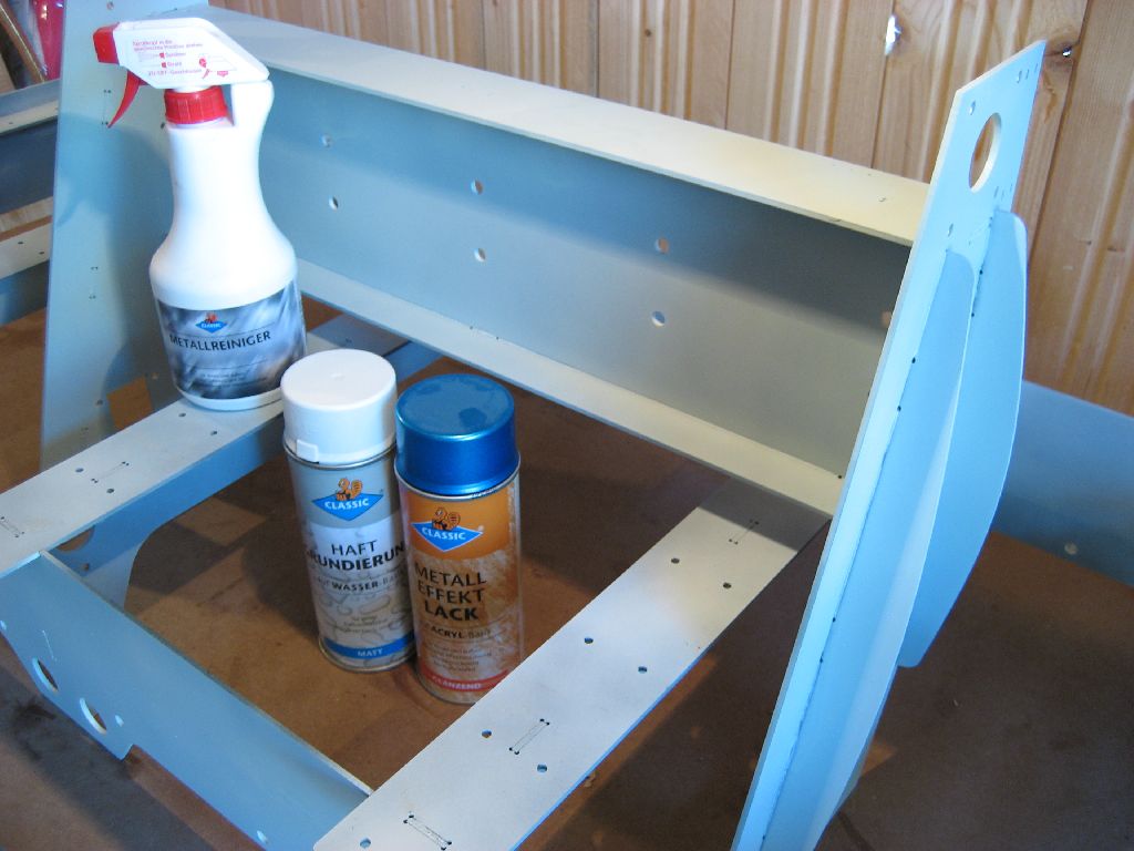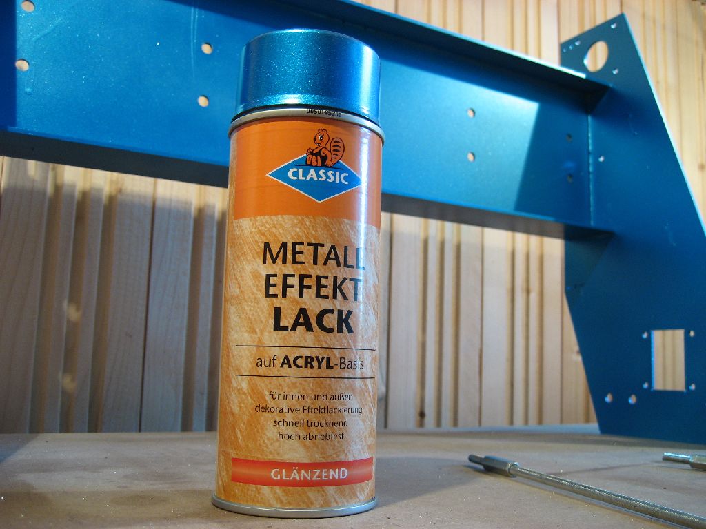 Um Korrosion zu vermeiden muß die Stahlkonstruktion lackiert oder irgendwie anders oberflächenbehandelt werden. Ich habe mich für die billige Methode aus dem Baumarkt entschieden. Nach einer gründlichen Reinigung wird der Rahmen mit einer weißen Grundierung gesprüht, anschließend kommt ein blauer Effektlack drauf. Bedenke: Das Auge fräst mit ...